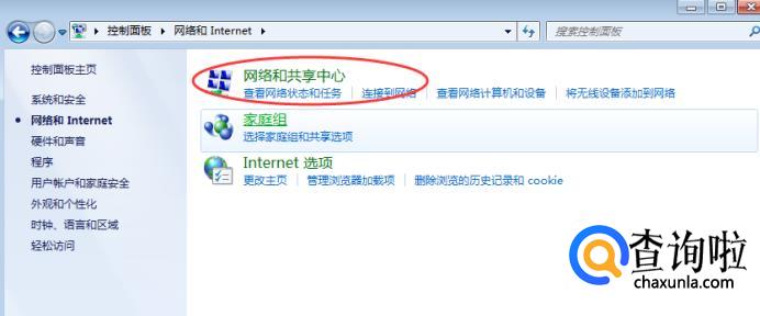在新界面选择“网络和共享中心”,如下图。
