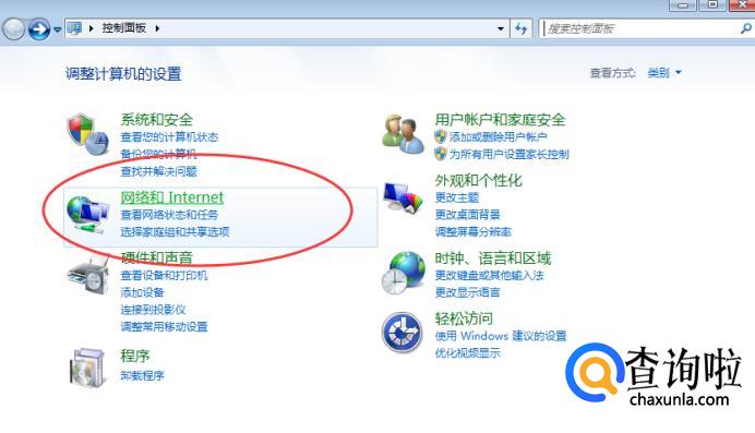 在控制面板界面点击“网络和Internet”,如下图。