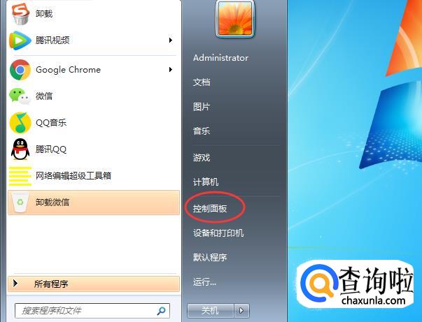 点击电脑左下角的菜单,打开控制面板,如下图。
