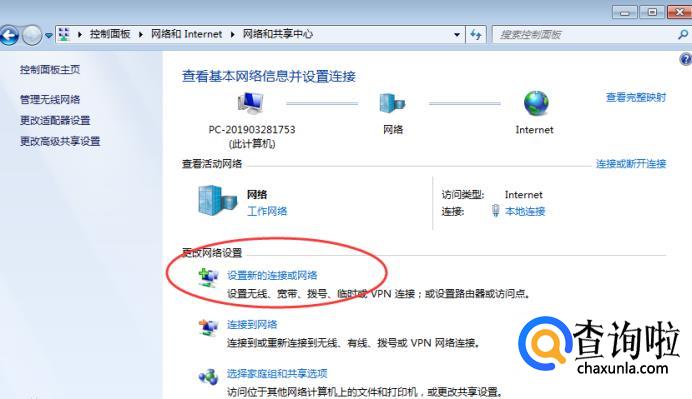 在弹出的新界面点击“设置新的连接或网络”,如下图。