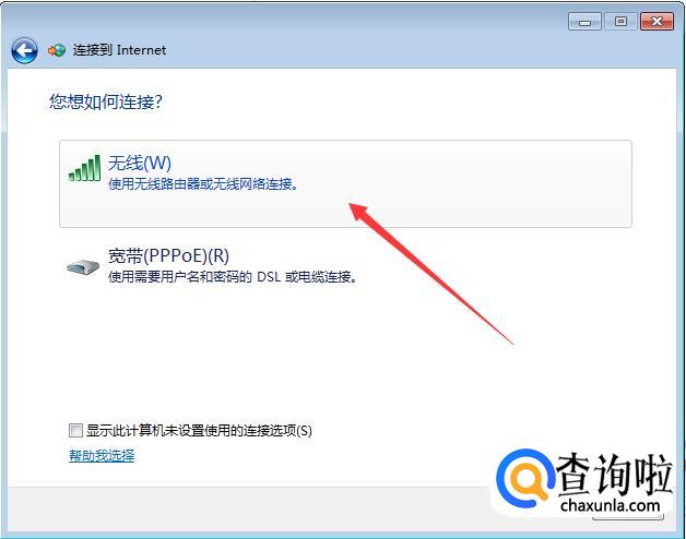 在弹出的这个页面中,如果你有无线网络,下面的列表就会显示出一个无线连接的选项,双击它,如下图。