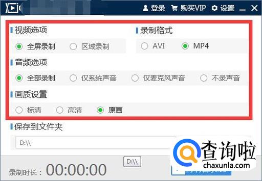 这时我们可以看到界面中有视频选项、录制格式、音频选项和画质设置等,这些都是我们在进行录制工作前可以选择自己想要的效果。
