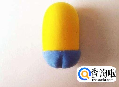 蓝色主要做小黄人的背带裤,用黑色的彩泥做小黄人的手套和脚的部分。这样小黄人有了大致的构造.