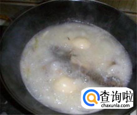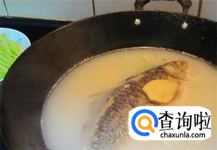 放上几片生姜,加上水没过鲫鱼,大火烧开。