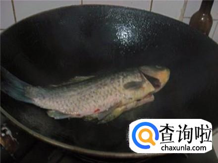 平底锅里倒一点点油,把晾干的鲫鱼放进去两面煎的微黄。