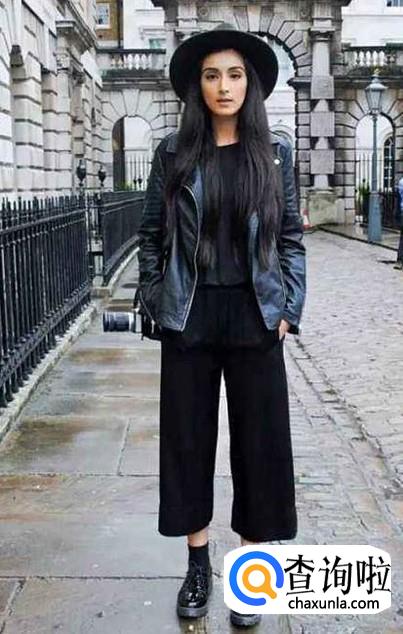 皮夹克+阔腿裤:春天刚来,天气还有些寒意,这时候可以用皮衣搭配稍厚的阔腿裤,既时尚又保暖。