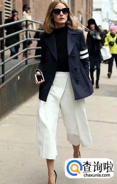 收腰西装+阔腿裤:收腰西装能显示出女性的柔美干练,配上阔腿裤使整个人提升气场。