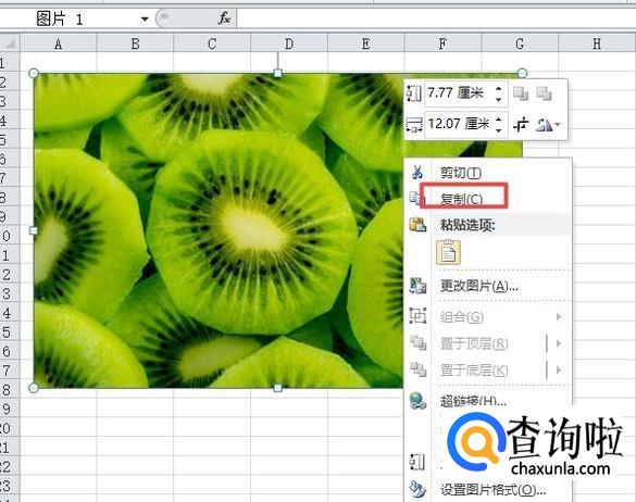 首先,我们打开一个有图片的excel文档,我们选中这个图片,然后我们右击选择复制;