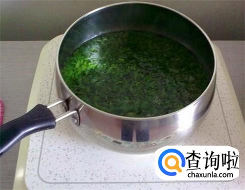 锅里面加清水,把收割来的艾草放进去,大火烧开,然后中火慢慢的煮,一般二十分钟左右,你会看到清水已经变得绿绿的,且散发着浓浓的艾草香气就可以。