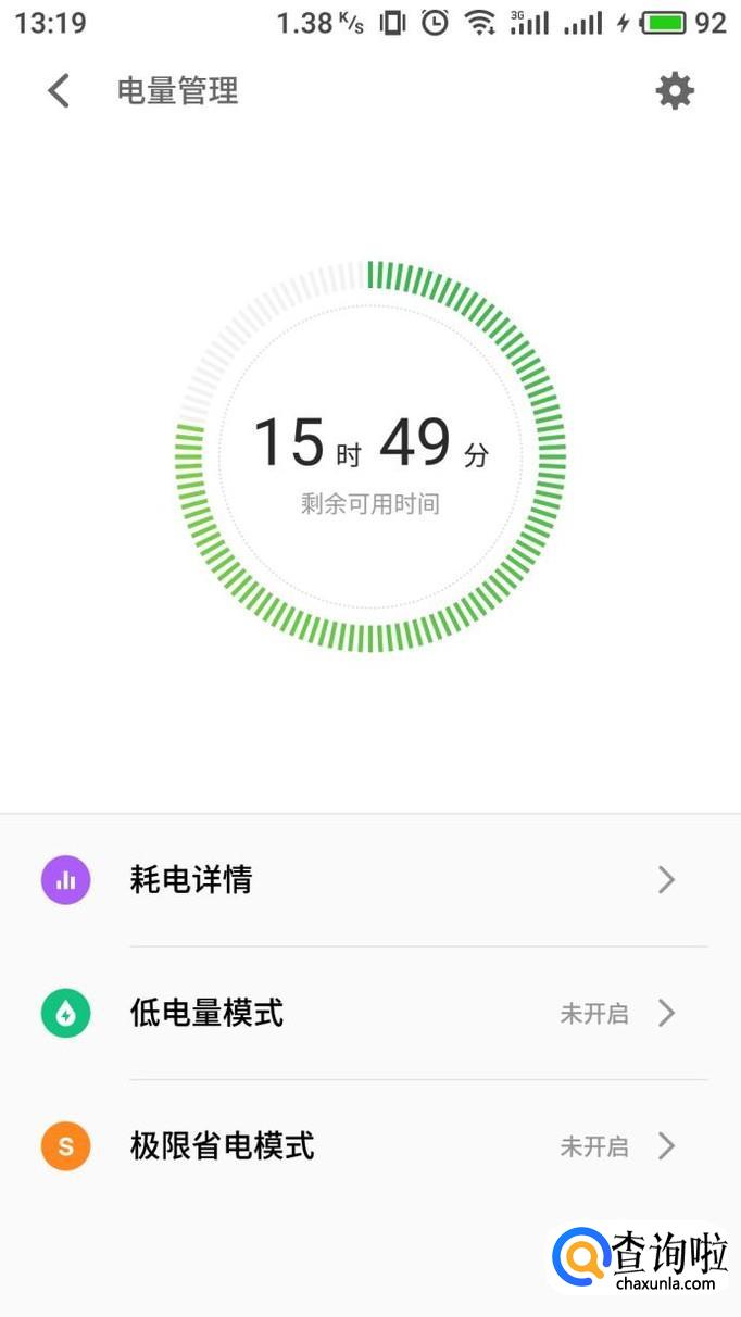 在电量管理界面我们可以切换电量模式,点击右上角“齿轮”进入设置界面。