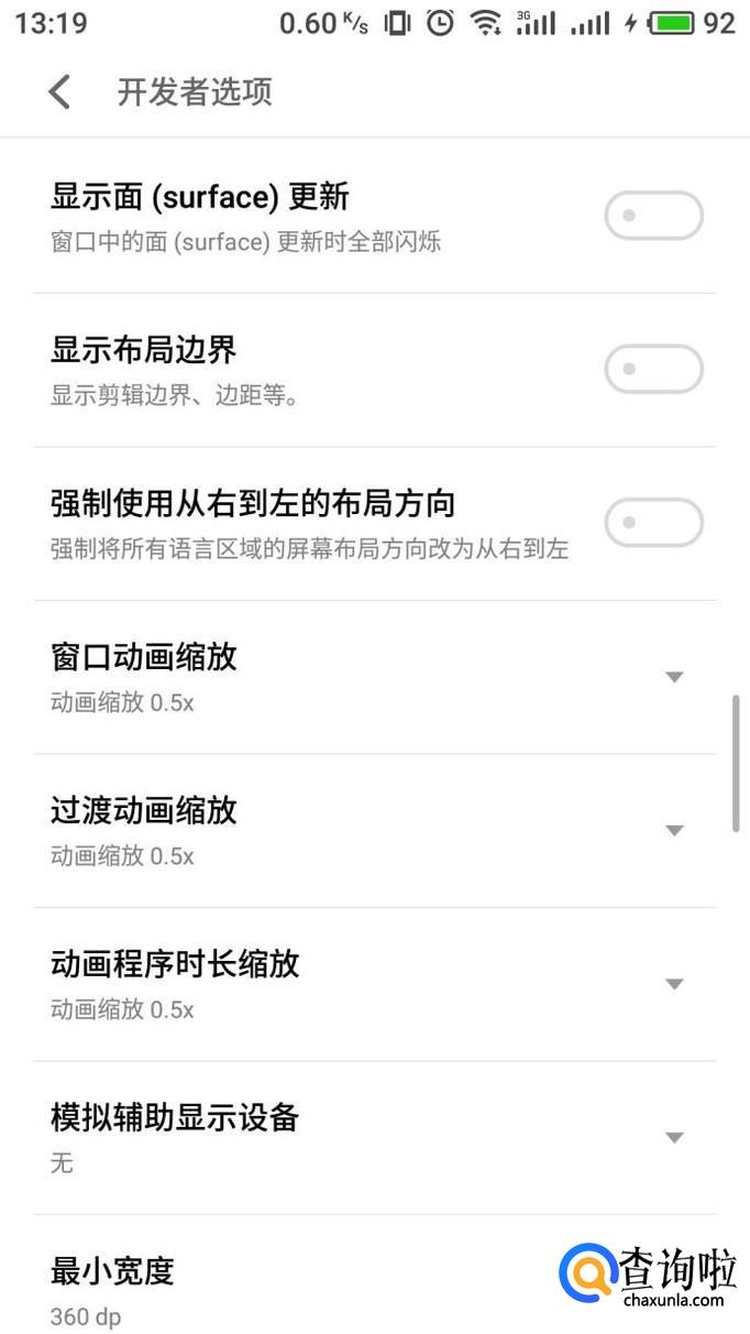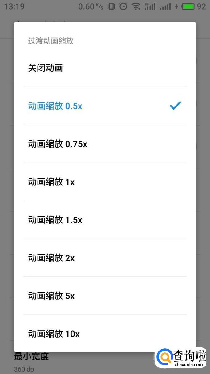 在手机设置开发者选项中,能够看到窗口动画、过度动画以及动画程序时长3个选项。