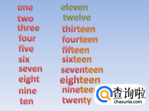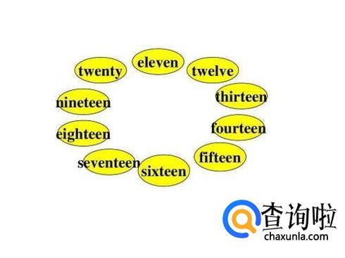 十几的数的表达,除了十一eleven, 十二twelve,其余的数字几乎都是三到九的数加-teen:thirteen,fourteen,fifteen,sixteen,seventeen,eighteen,ninteen.