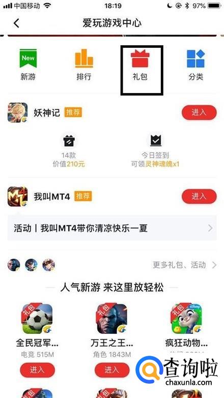 然后点击礼包,如下图所示。