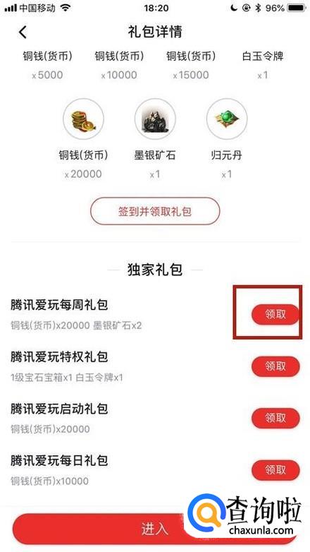 然后点击我们想要领取礼包右侧的领取,如下图所示。