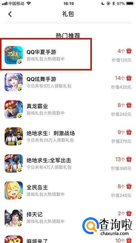 接着点击一个我们想要领取礼包的游戏,如下图所示。