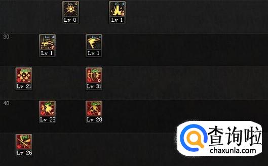 点出1级的樱落斩和圆舞斩作为聚怪技能来使用;点出1级的碎岩裂地掌,该技能在释放后会给敌人带来一小段的僵直;LV35~45的五个输出技能全部点满。