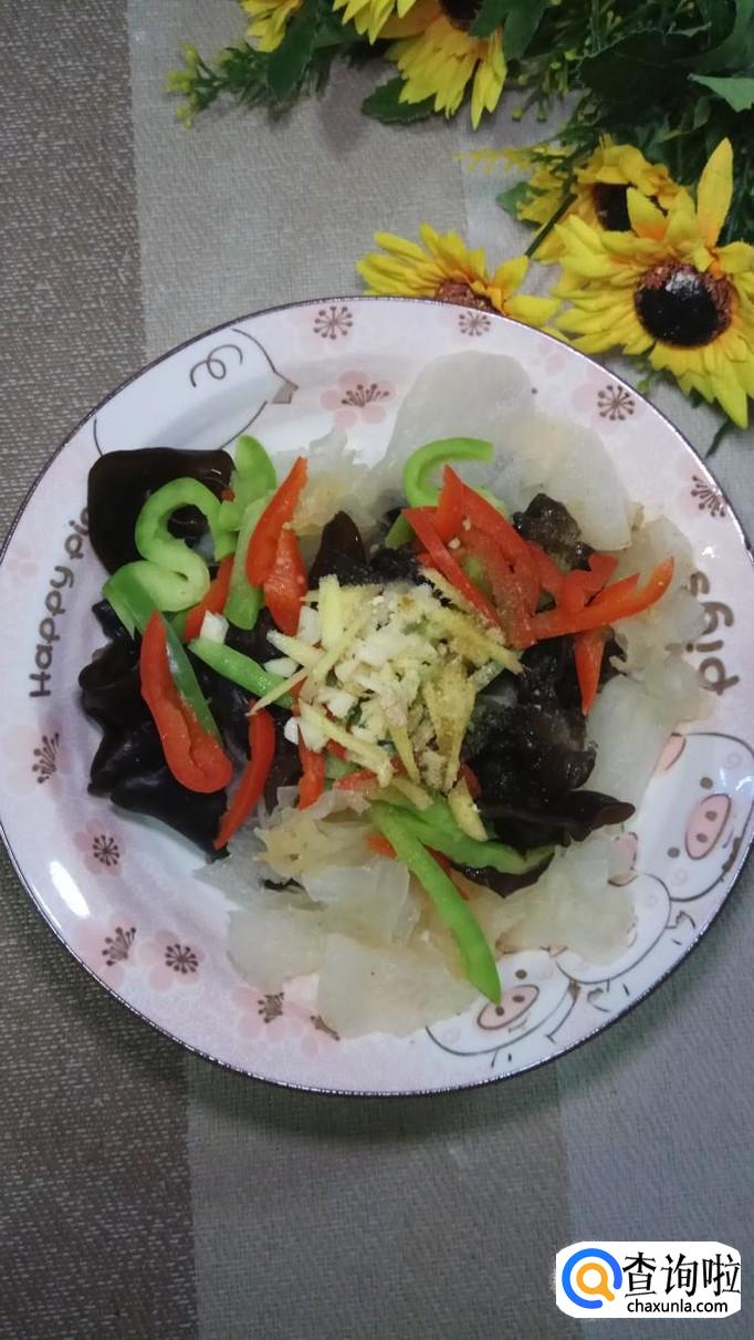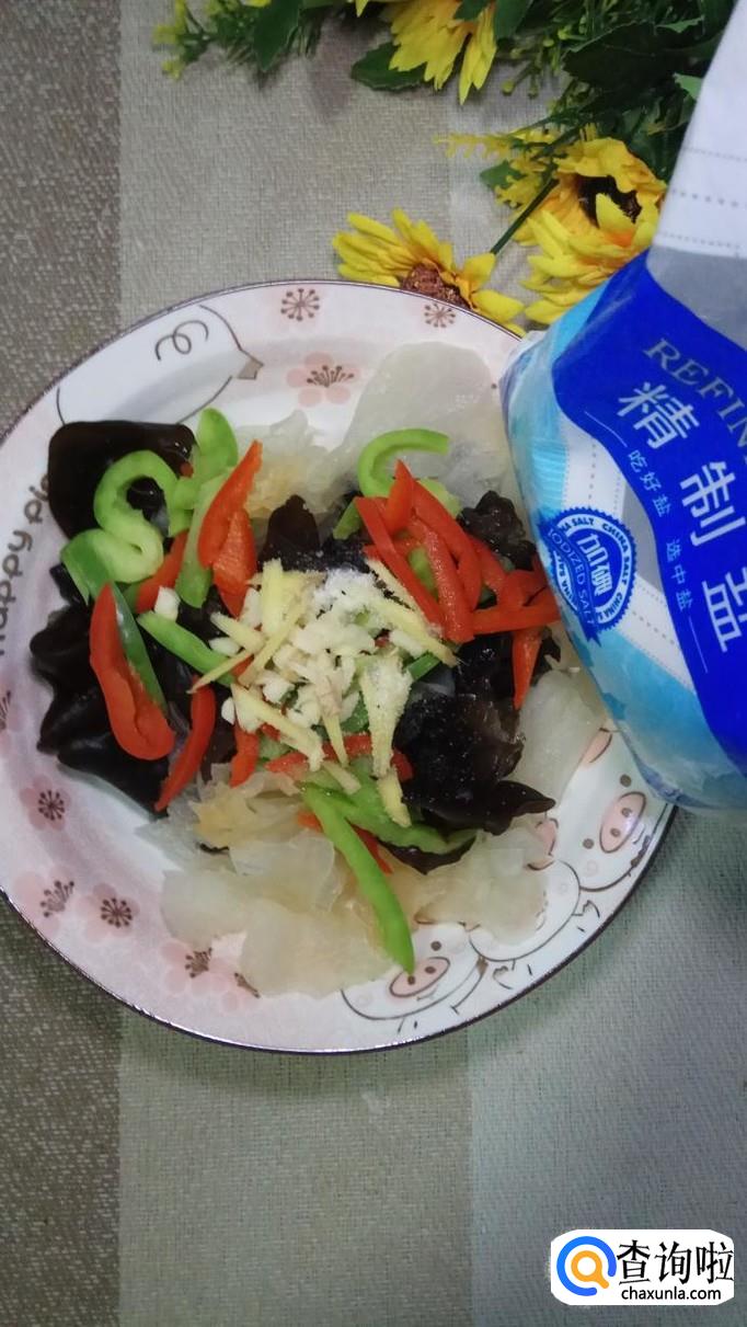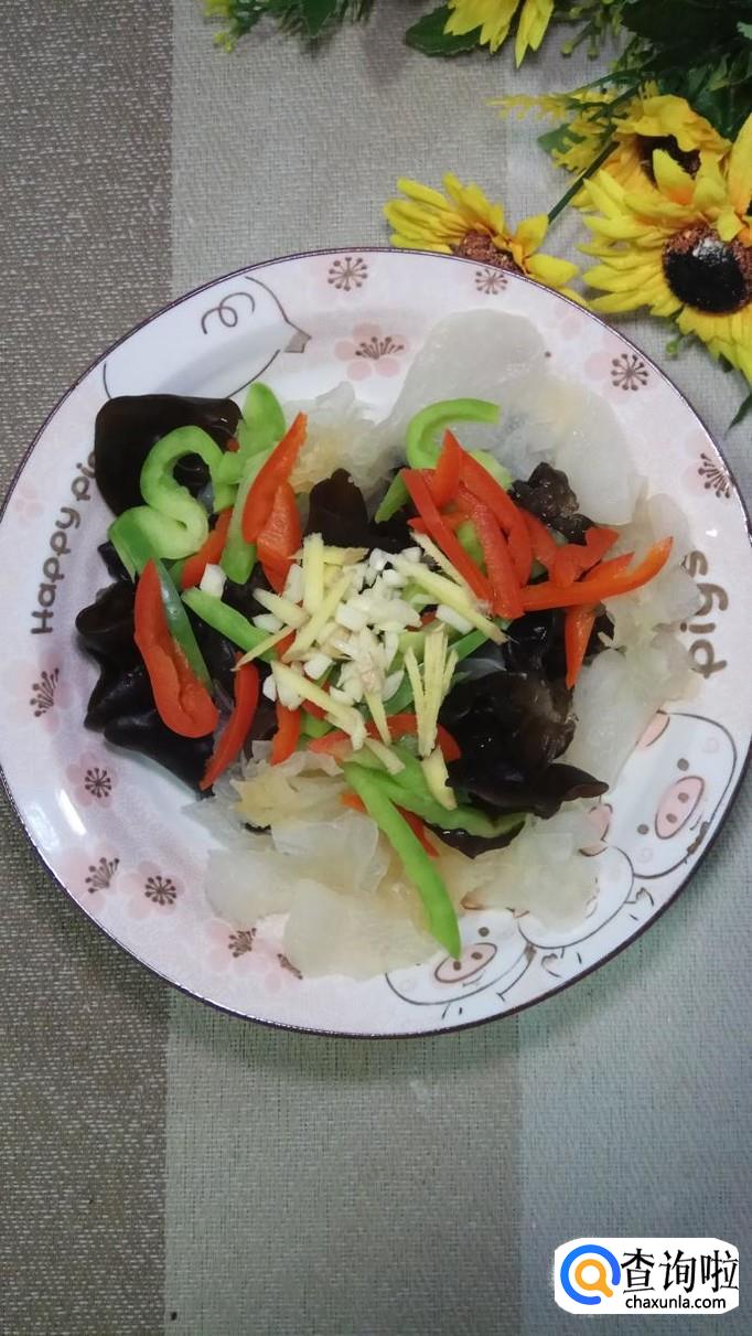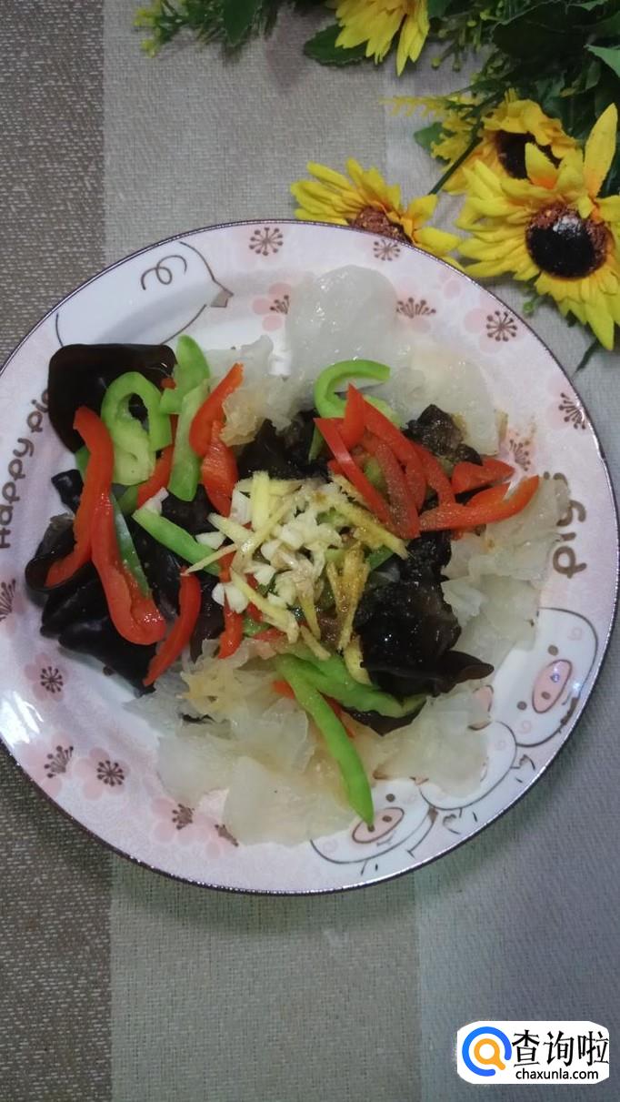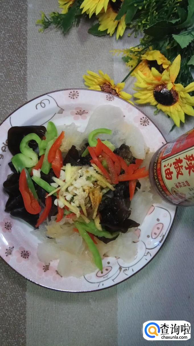 黑木耳适量,银耳适量,青椒适量,红椒适量,姜适量,蒜适量,盐适量,我想粉适量,生抽适量,白醋适量,花椒适量。