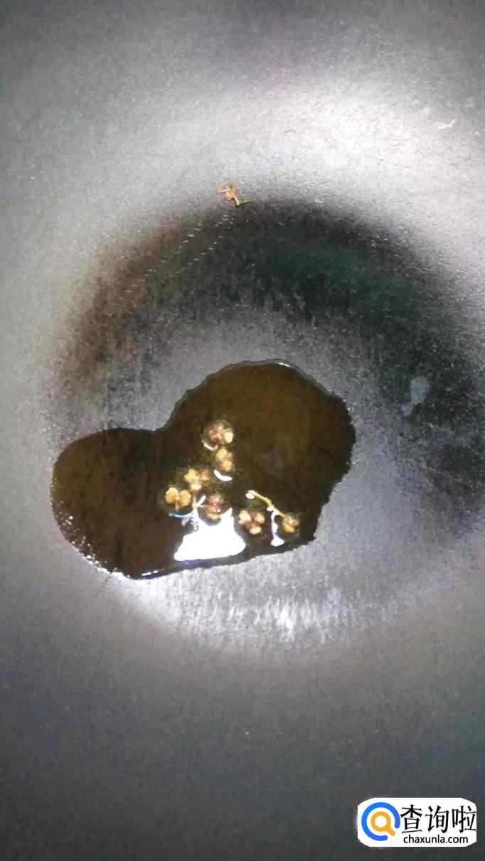 炒锅中烧少许热油,加入少量的花椒炒香,趁热将油浇在盘子上面,听到滋滋啦啦的响,说明非常到位。