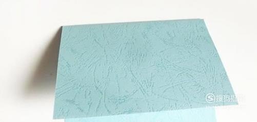 先拿出长方形蓝色卡纸,上面带有纹路。对折,把它作为空白卡片。