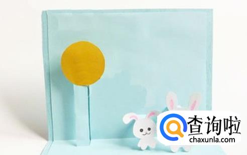 最后把月亮和兔子贴到台阶上,立体中秋节贺卡制作完成了!