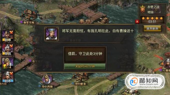 烽火王师是网易代理的策略游戏,在赤壁之战地狱模式剧本里,玩家需要合理的去处理事件和行走合理的路线才可以获得五星剧本。