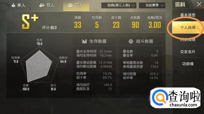 最后,点击【个人战绩】,就可以查看好友的战绩了,如图所示