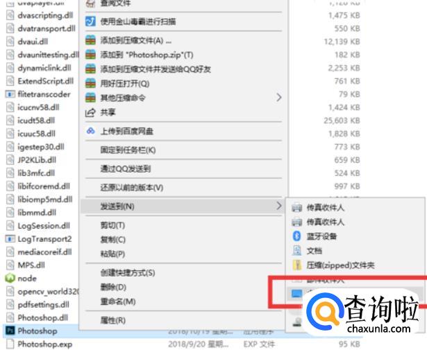 最后在找到Photoshop cc 2019的启动文件,右键将其发送到桌面快捷键方式。这样我们就完成了。