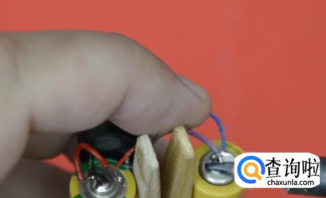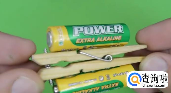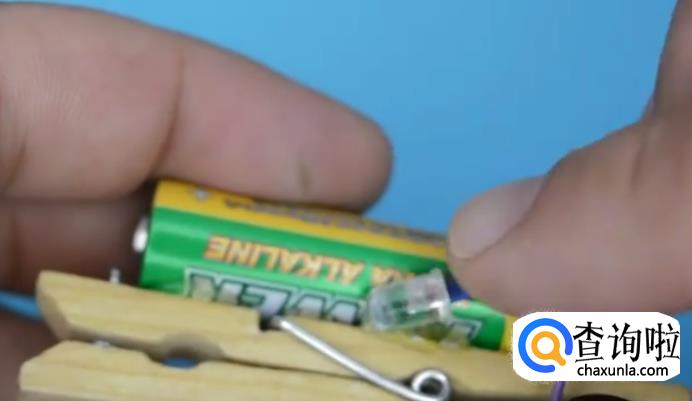 然后把电池粘在夹子上。