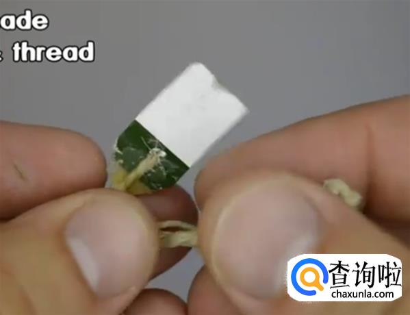 在一张小纸片上,绑一根绳子。