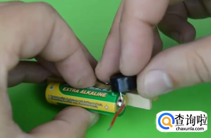 再在电池上粘上蜂鸣器。