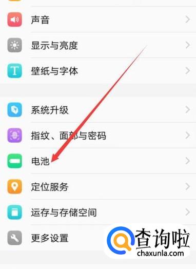 进入设置后,找到“电池”选项,点击并进入,如图所示。