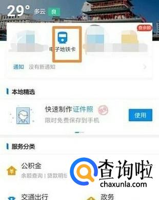 使用支付宝乘坐地铁,首先要在支付宝上领取一张本城市的电子地铁卡,电子地铁卡是支付宝推出的一类便捷支付方式。