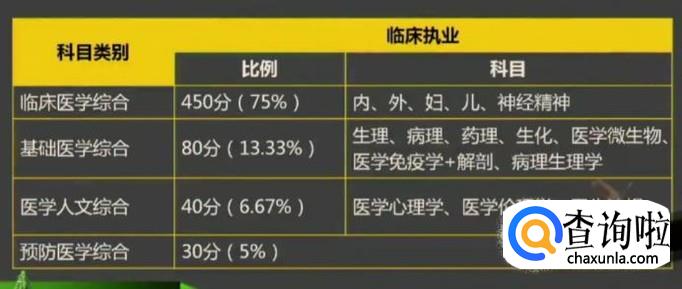 笔试考试分数任然是300分,科目考试占分比值没有太大的变化,只有基础医学综合里面科目的占分比变化了点,主要是增加了解刨学和病理生理学两个科目的考试。