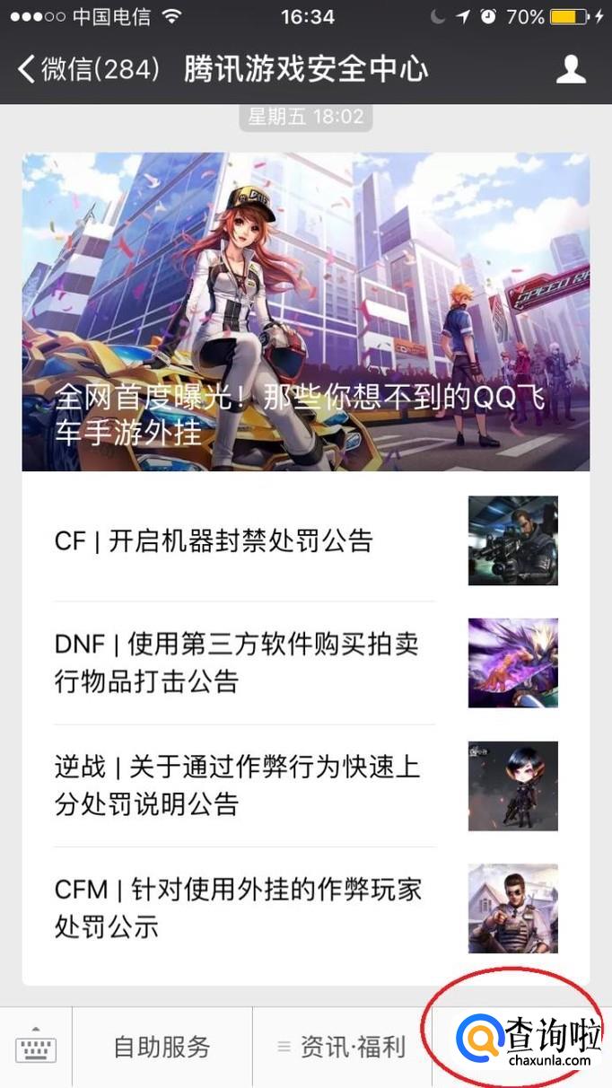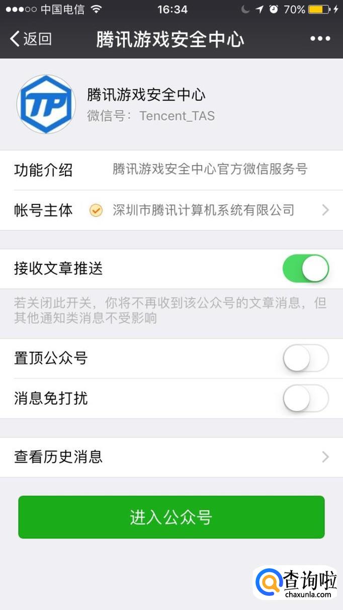 首先手机关注微信公众号“腾讯游戏安全游戏中心”
