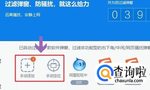 当然有些比较顽固的弹窗可以检测不到,这个时候点击页面中的“手动定位”或者“手动添加”,然后将那些没有过滤干净的网站或者弹窗界面添加进来即可;