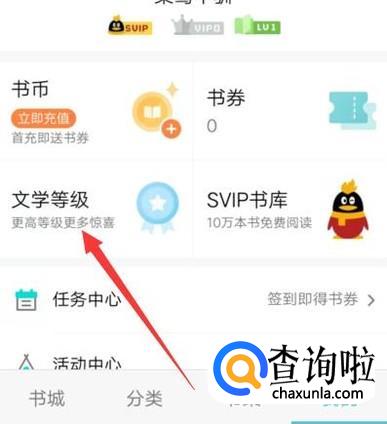 进入之后,点击“文学等级”,进入下一页面,如图所示。