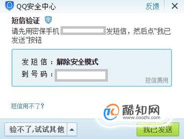 第三种方式是通过向手机QQ安全中心发送相应的验证消息,进行确认后,解除安全模式。
