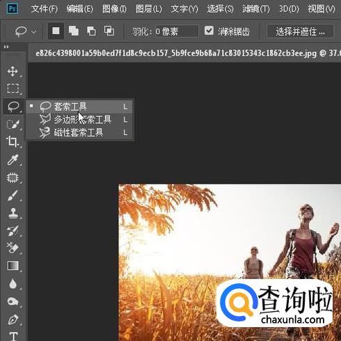 在工具栏中,调出套索工具,或是按L键,调出套索工具。