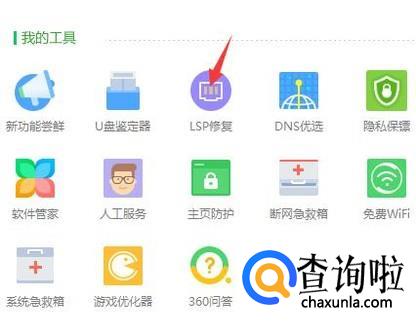 如果这个方式无法解决,那么还有一个方法。打开360安全卫士选择更多选项,然后在我的工具里面找到LSP修复,点击进入立即修复即可,然后笔记本的页面就恢复正常啦。