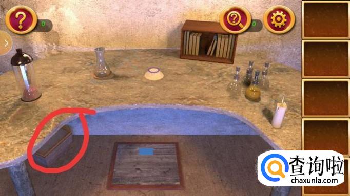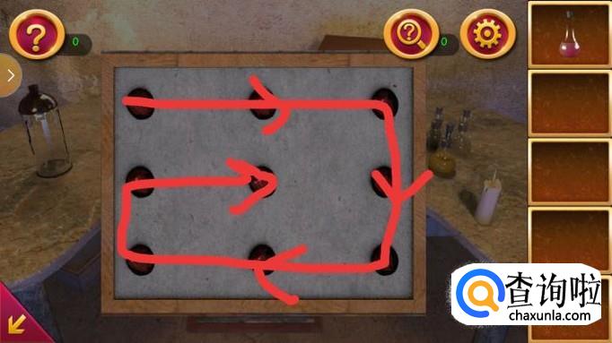 打开左下角的盒子并按照图中箭头所示依次点亮按钮,将会得到蓝色液体