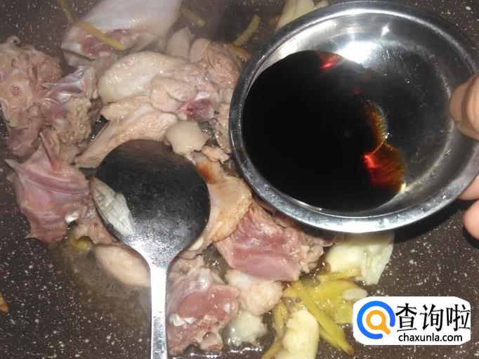 鸭肉300克,平菇150克,蒜米、姜丝、生抽、料酒适量。