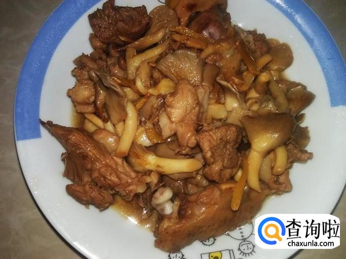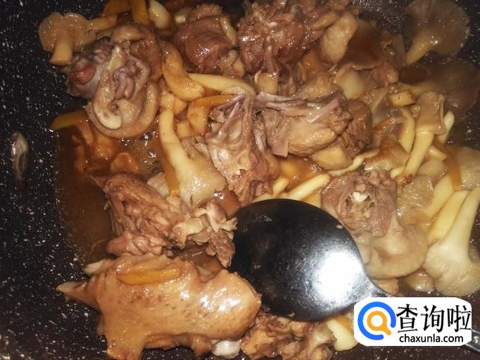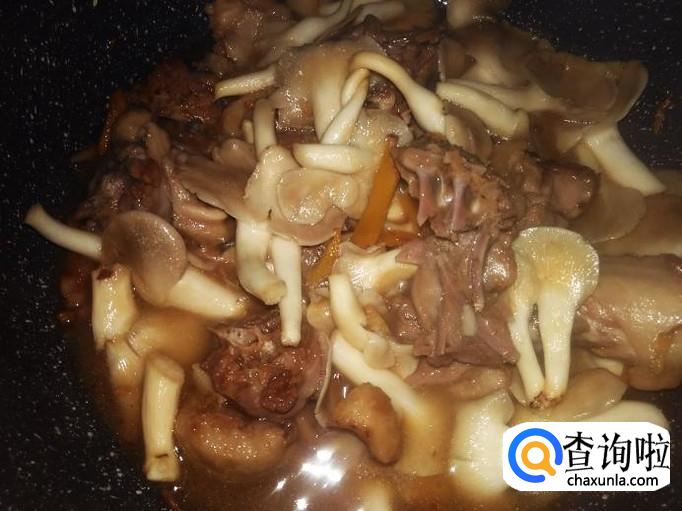 然后打开翻炒一下,熄火。香喷喷的平菇焖鸭肉就做好了。