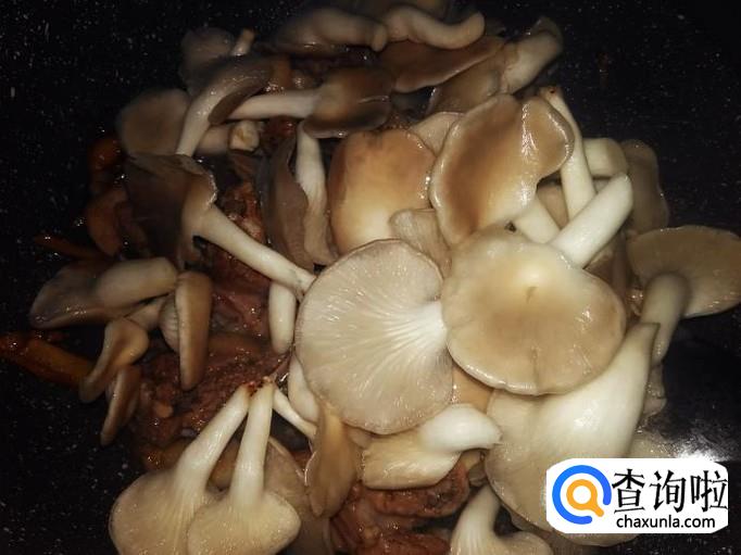 翻炒20秒左右,盖上盖子小火焖10分钟左右。【不要加水,因为平菇本身含水份很多】