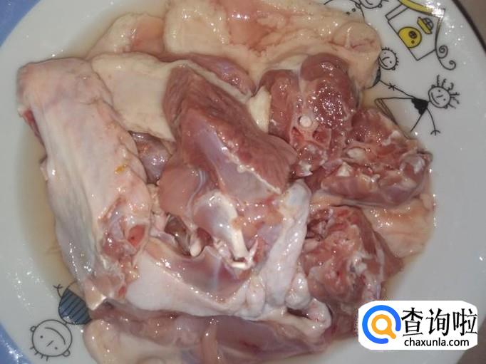 首先把平菇清洗干净沥干水份,鸭肉清洗干净,然后斩成一块块。