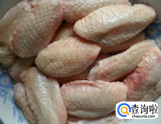 将鸡翅洗干净,放入冷水中烧开,撇去浮沫,捞出晾干。