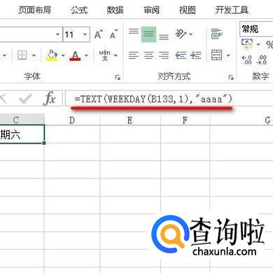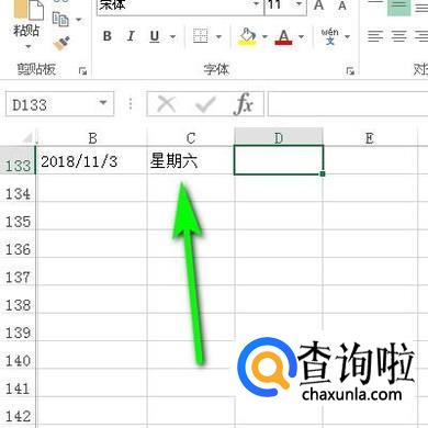 接着,我们在C133单元格输入:=TEXT(WEEKDAY(B133,1),"aaaa")