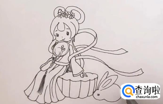 然后在画出嫦娥的脸。如图所示。
