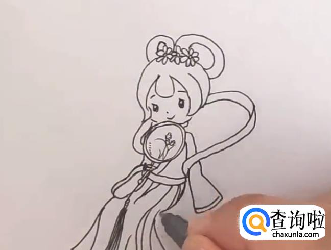 接着画出嫦娥的衣服。如图所示。