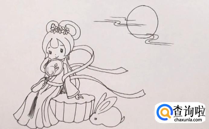 接着画出嫦娥坐着的月饼。如图所示。