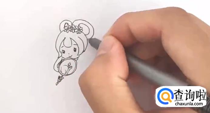 然后画出嫦娥的手。如图所示。